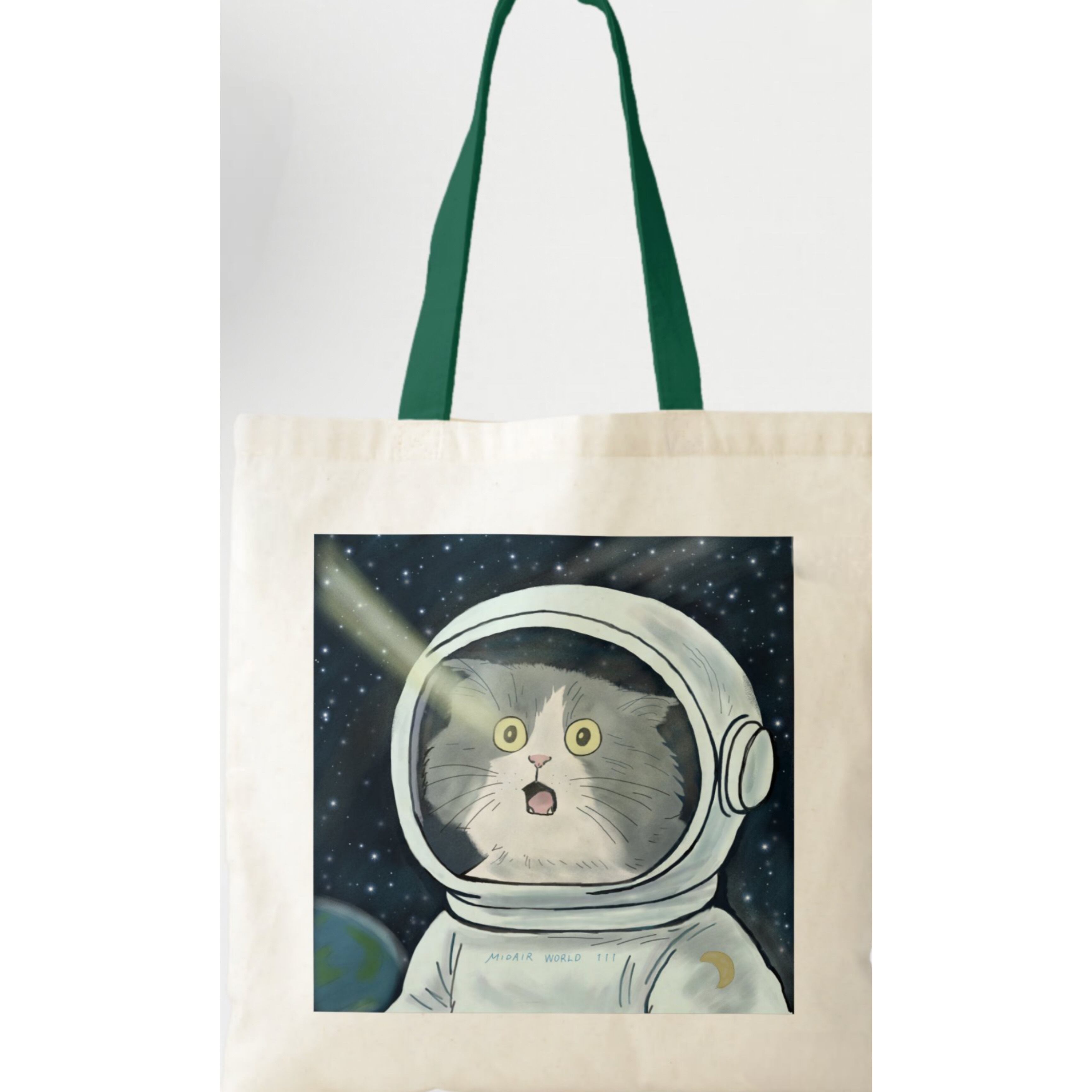 はじめまして。宇宙猫(月さん)のファンのみなさんへ、このトートバッグをお届けできることが本当に嬉しいです。