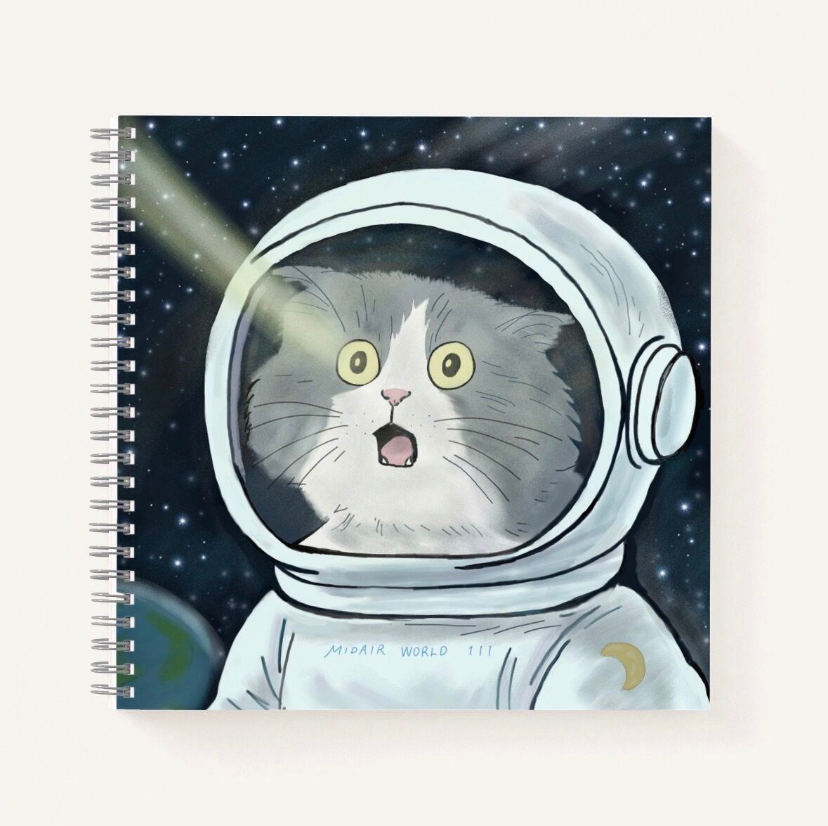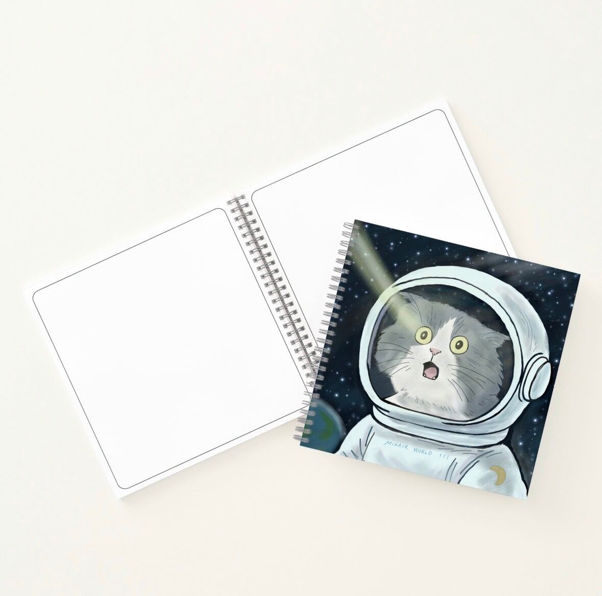 Meow?! 月宇宙猫 (ロンT(L)・トートバッグ・缶バッチ・シール・アクリルキーホルダー・リングノート)セット販売
