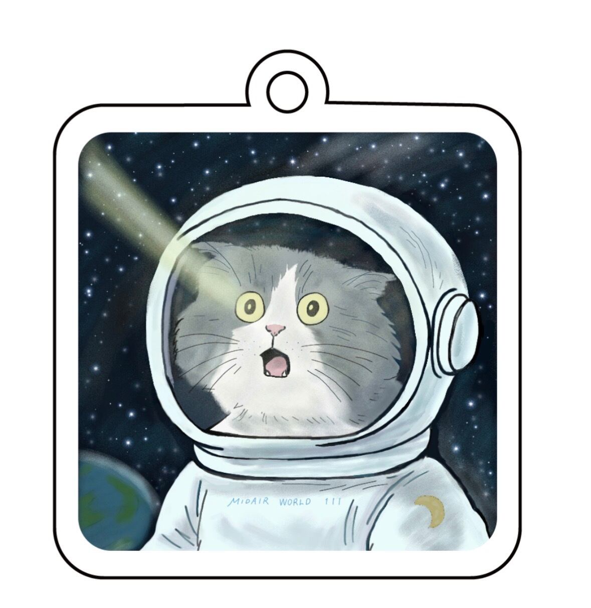 サイズ:6cmの鮮やかで透明なアクリル素材。鍵やバッグに取り付ければ、宇宙猫の存在感をしっかりアピール!